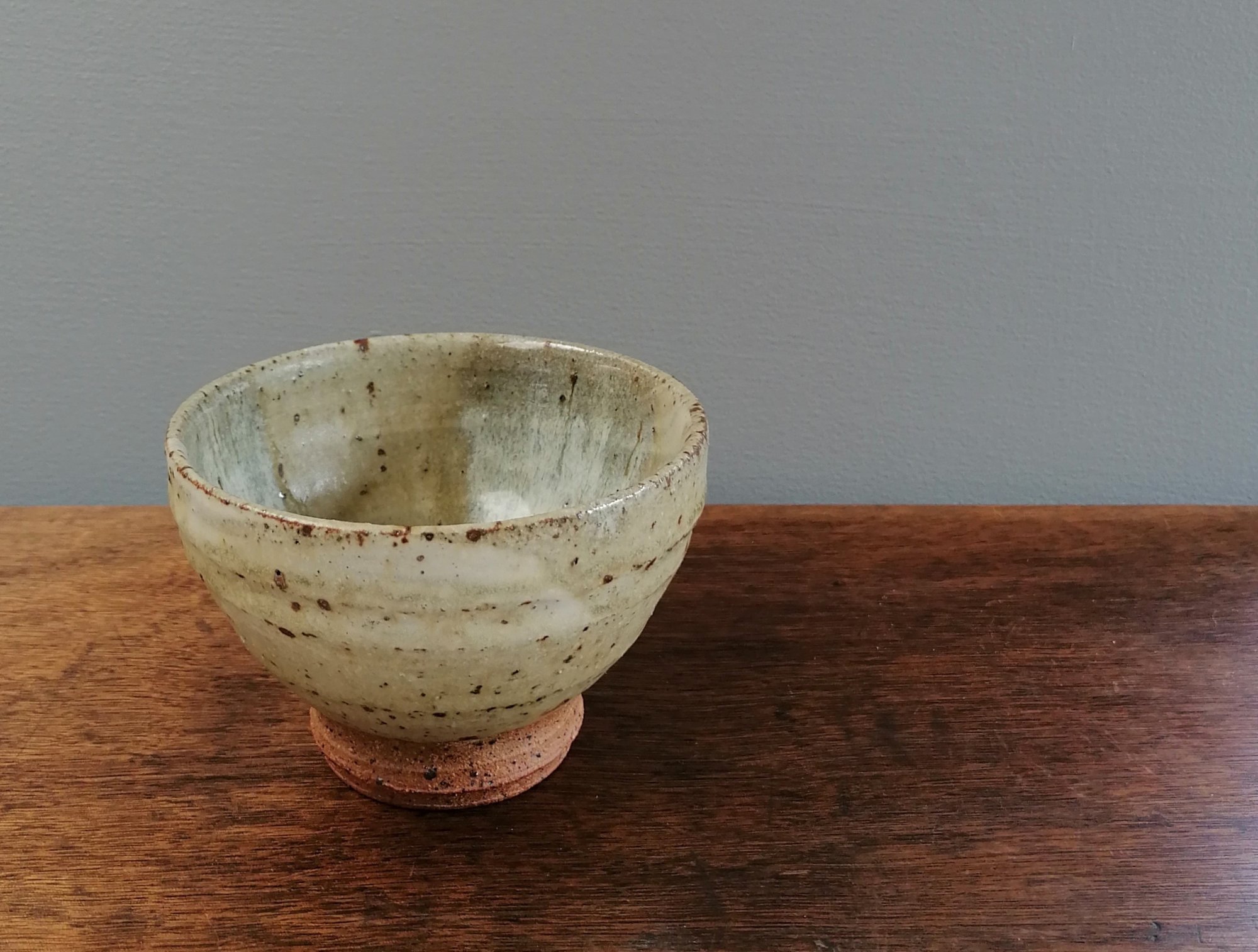 A larger drinking bowl made a brand new clay blend which I've developed this year with a tried and tested ash glazed surface. The clay blend is a high iron clay based around two types of English ball clay, a Cornish fire clay and a Welsh river sand I've collect locally. It's given me a really satisfying textured clay body with a dark colour and speckle.